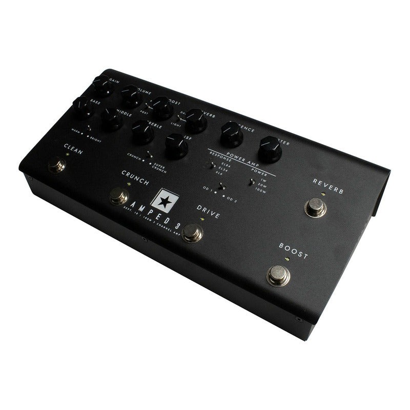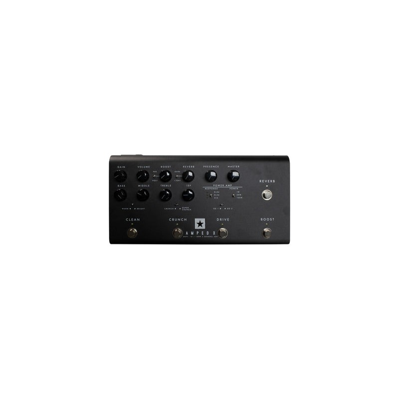AMPED 3 es un amplificador multicanal de pedal de 100 vatios. Cuenta con uno de los circuitos de mayor ganancia que Blackstar haya desarrollado y con la capacidad de recuperar sus tonos favoritos a través de preajustes. AMPED 3 es capaz de ofrecer el tono y la sensación de los amplificadores de válvulas tradicionales. Puede usarlo en la parte frontal de un amplificador tradicional, alimentar un gabinete a 100 vatios o ir directamente, asegurándose de que puede llevar su sonido a cualquier parte. La reducción de potencia de hasta 1 W y la conectividad USB-C garantizan que esté igualmente en casa en el estudio o en el escenario.