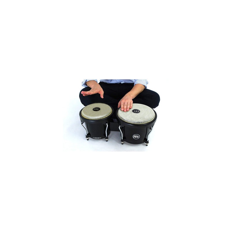 Bongo Headliner de Meinl. Modelo: HB-100BK. Color negro. Medida: 6.75" y 8.8" pulgadas. Madera laqueada. Fabricado en fibra de vidrio. Parches de piel de búfalo. Alto brillo. Ganchos de 8 mm de ancho. Aros recubiertos de negro de 2 mm. Incluye llave afinadora.