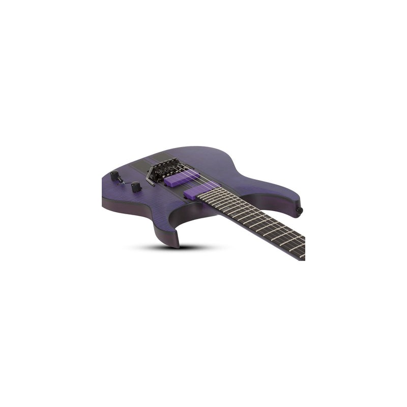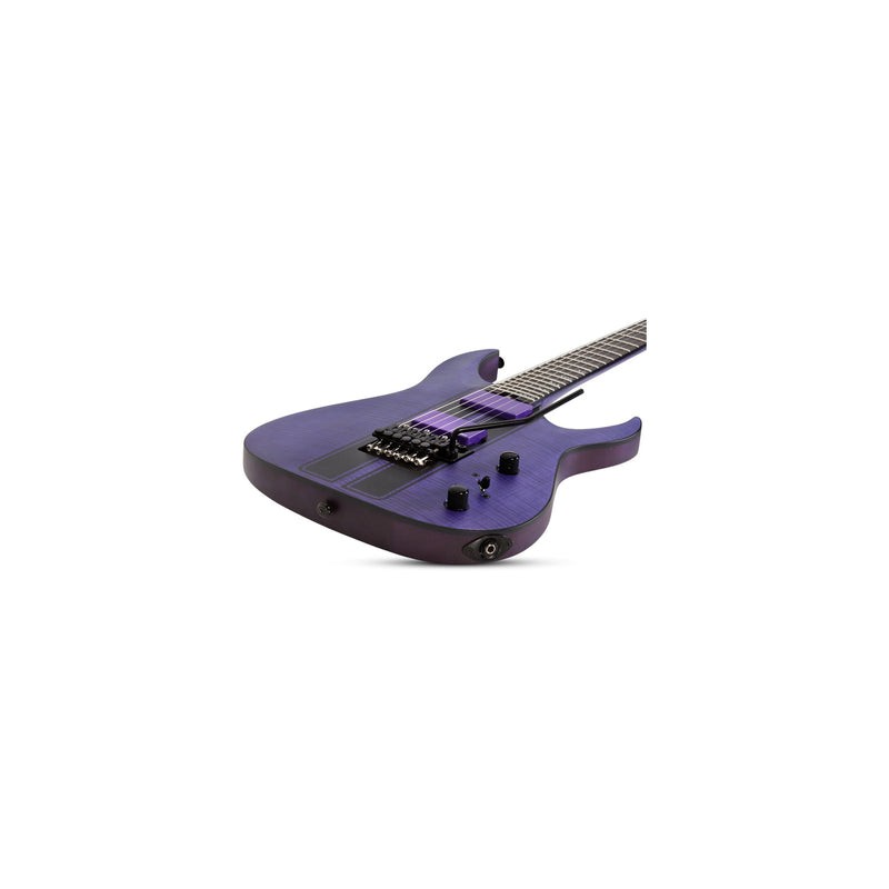 Guitarra eléctrica sólida, cuerpo de caoba, tapa de radio superior de maple flameado, construcción: Set-Neck con Ultra Access, hardware negro, puente Floyd Rose Special Hot Rod Locking Tremolo (Schecter Exclusive) Tuners Schecter, brazo U ultra delgado de 3 piezas de maple con varillas de refuerzo de fibra de carbono, incrustaciones Offset/Reverse de números romanos, escala: 25.5” (648 mm), 24 trastes X-Jumbo, diapasón de ébano, cejuela Floyd Rose Special de 1.625” (41.3 mm) de ancho, alma ajustable de 2 vías con Heel Access Spoke Wheel, 1 volumen, 1 tono, selector de 3 posiciones, pastilla del puente: EMG 81, pastilla del brazo: EMG 60, compartimento de la batería: 9-volt Clip-in, perillas de metal moleteado.